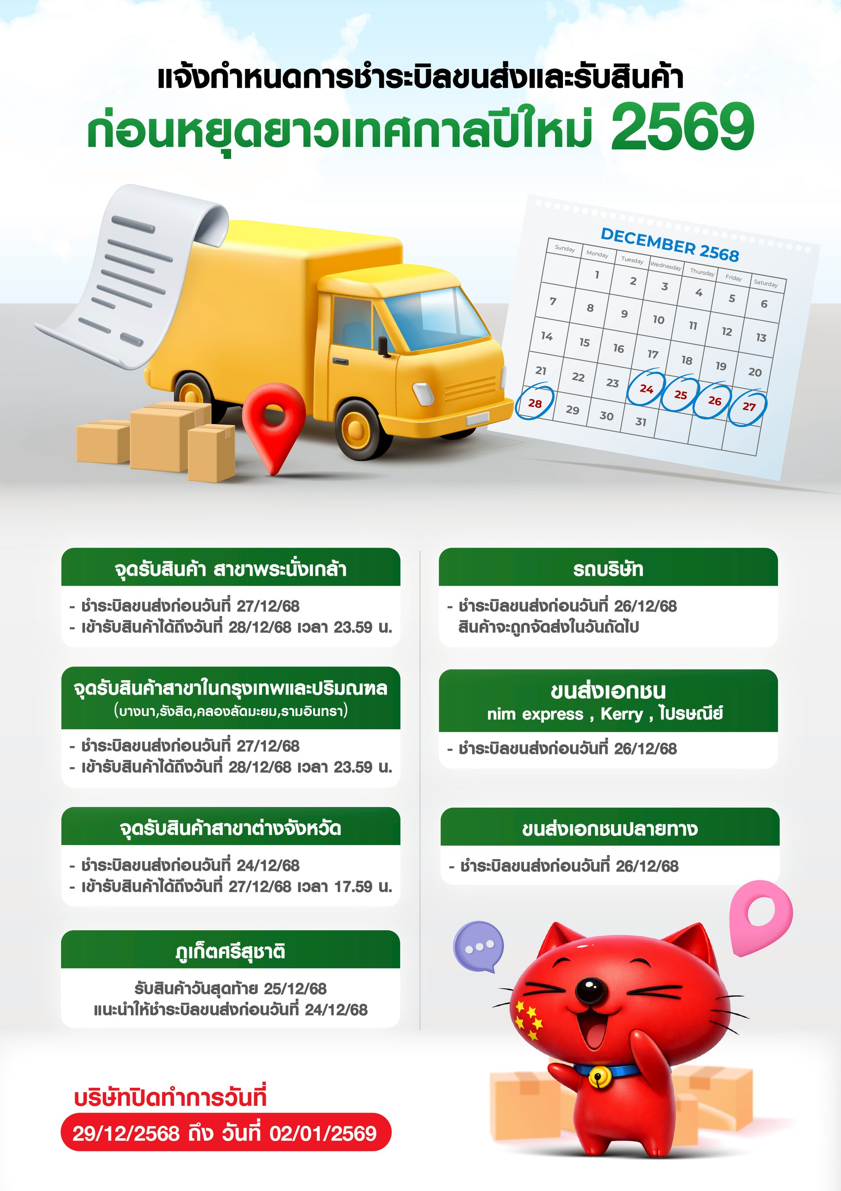 แจ้งวันหยุดเทศกาลปีใหม่...