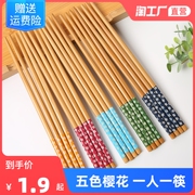 天然楠竹筷子创意5色24cm网红家用樱花防滑一人家庭耐高温双装
