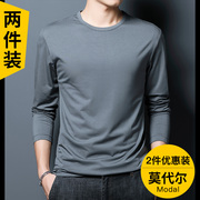 亲肤抗菌莫代尔棉打底衫男防晒长袖T恤2025春夏纯白色内搭上衣服