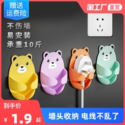 多功能插头挂钩粘钩强力粘胶卡通免打孔电源线厨房插座收纳固定器