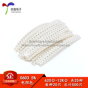 元件包 0603 贴片电阻包 620R-12K 5% 共25种每种20只