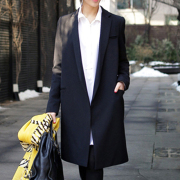 韩国2015春装新款女装韩版中长款休闲显瘦气质黑色小西装领外套
