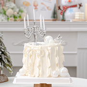 网红唯美女神生日蛋糕装饰复古烛台蜡烛摆件珍珠蝴蝶结小皇冠插件