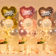 发光生日快乐桌飘爱心形立柱气球装饰儿童宝宝男女孩场景派对布置