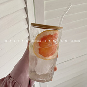 冰川纹玻璃杯带盖吸管高颜值磨砂网红ins风女生家用水杯子咖啡杯
