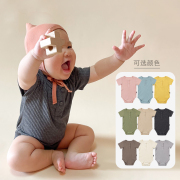 ins简约坑条 夏日宝宝纯棉连体衣轻薄包屁衣短爬婴儿欧美外出爬服