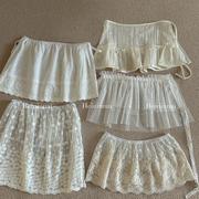 蕾丝屁帘女夏天2025夏天下摆叠穿裙子搭配裙帘时尚白色花边半身裙