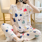 2024新款棉绸睡衣女夏薄款短袖长裤套装宽松韩版清新防凸点家居服