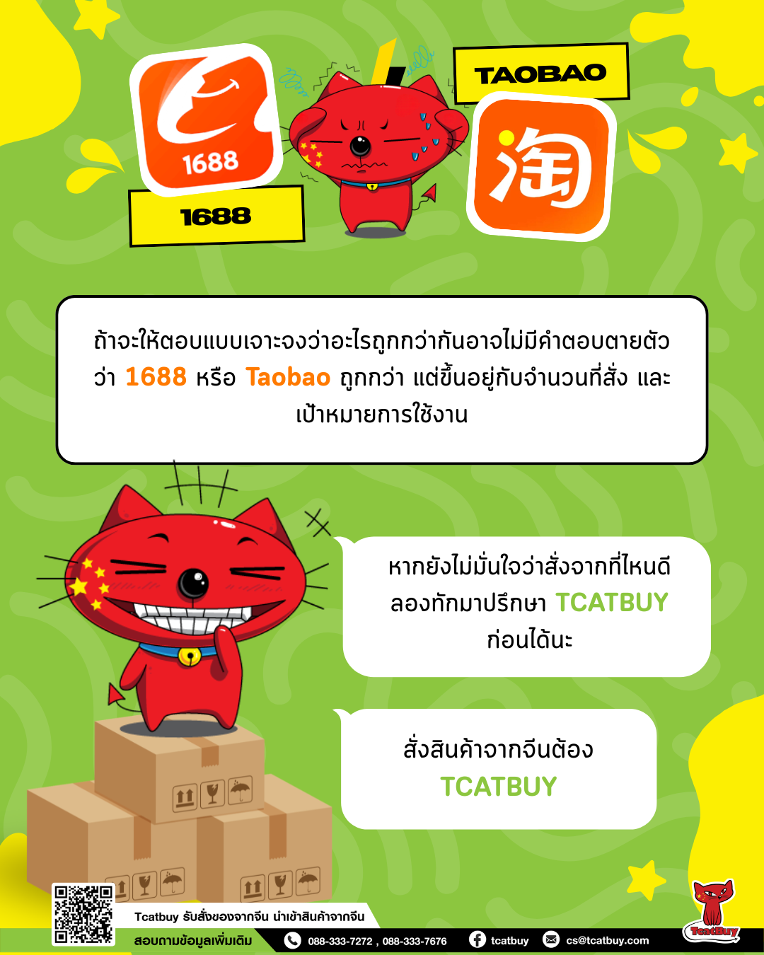 ถ้าจะให้ตอบแบบเจาะจงว่าอะไรถูกกว่ากันอาจไม่มีคำตอบตายตัวว่า 1688 หรือ Taobao ถูกกว่า แต่ขึ้นอยู่กับจำนวนที่สั่ง และ เป้าหมายการใช้งาน