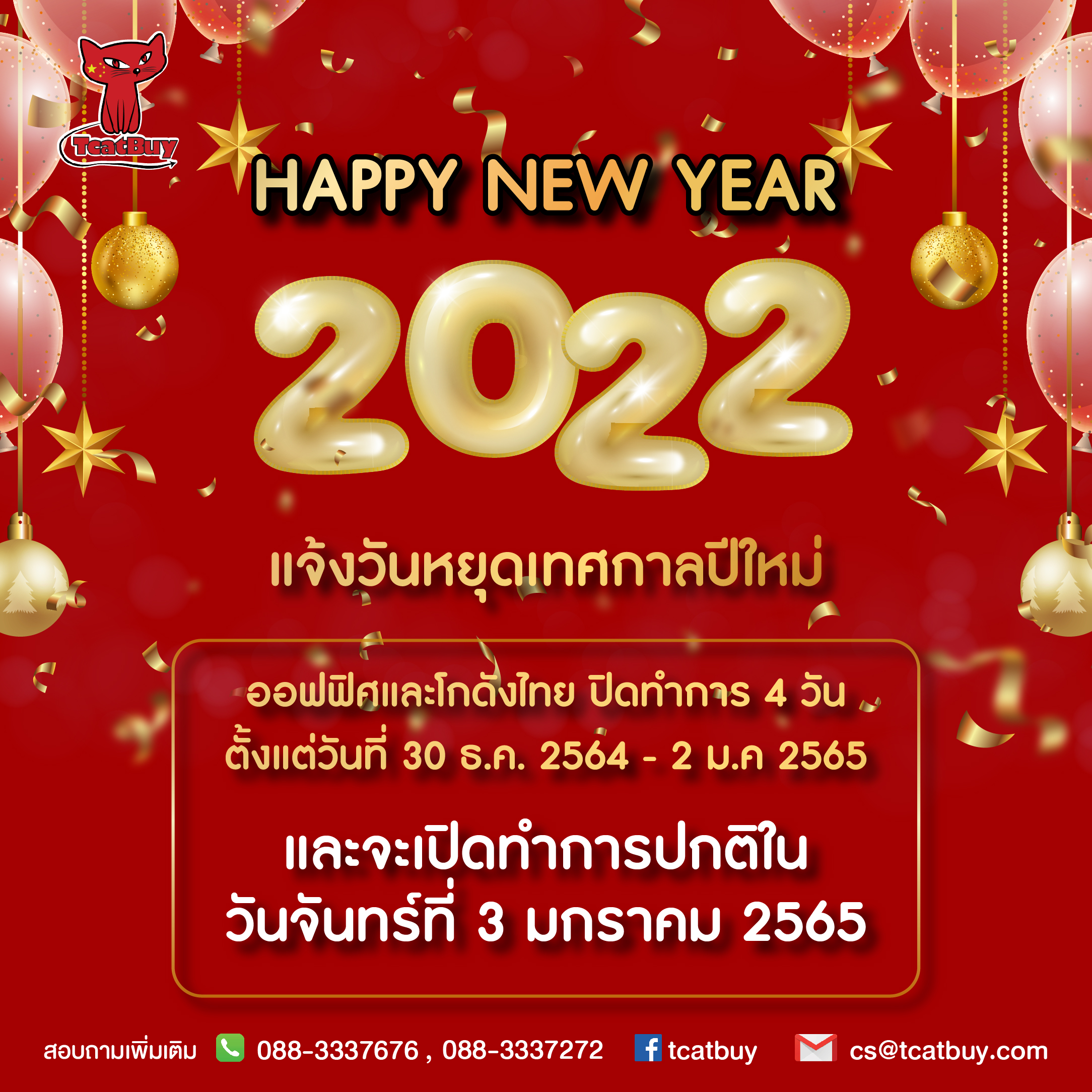 แจ้งวันหยุดเทศกาลปีใหม่