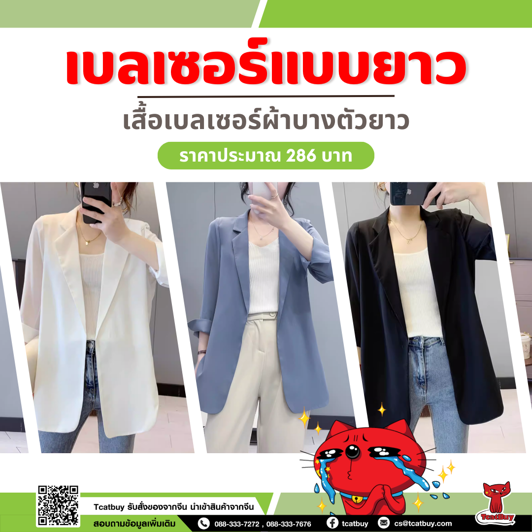 เสื้อเบลเซอร์ผ้าบางตัวยาว จาก Taobao ราคาประมาณ 286 บาท https://url.in.th/NRzSm
