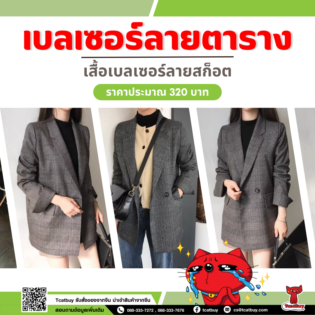 เสื้อเบลเซอร์ลายสก็อต จาก Taobao ราคาประมาณ 320 บาท https://url.in.th/hCrcq