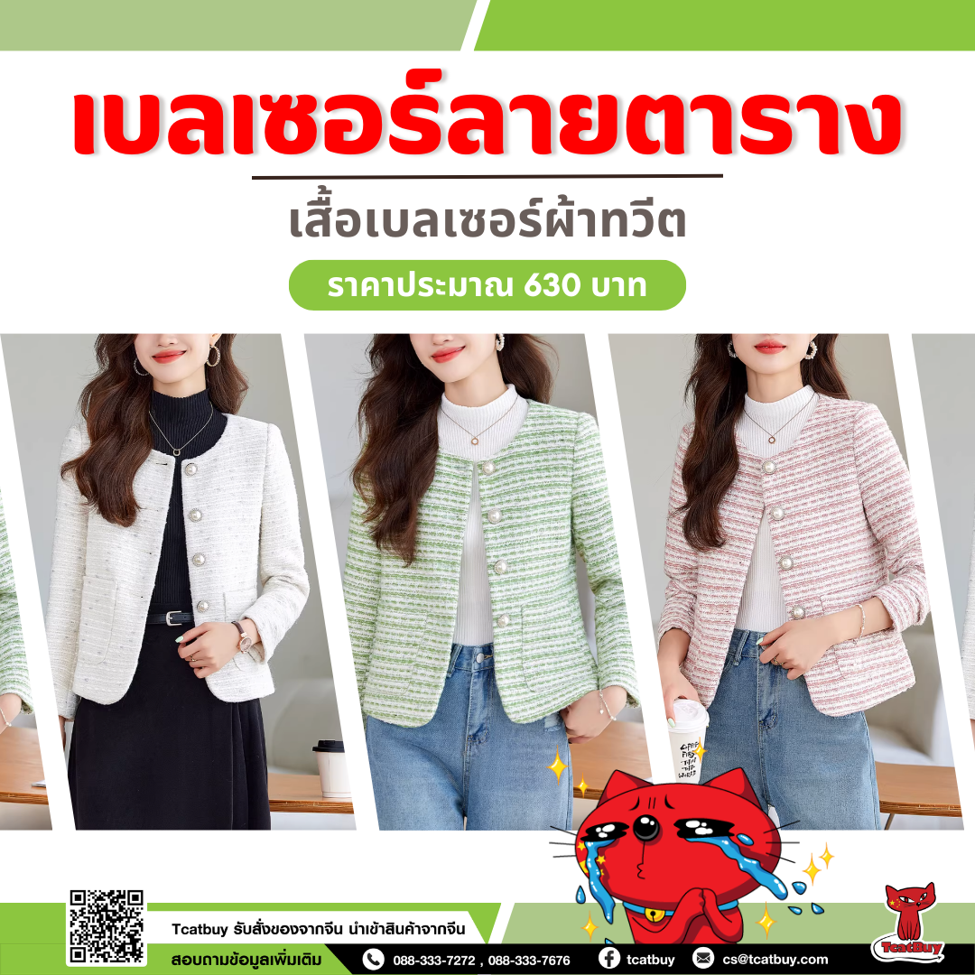 ถ้าอยากเริ่มต้นธุรกิจเสื้อผ้า หรืออยากได้เสื้อเบลเซอร์จากจีนมาใส่เองแบบคุ้ม ๆ การใช้บริการ สั่งของจากจีน ผ่าน tcatbuy คืออีกตัวเลือกที่น่าสนใจมาก และใครที่สนใจสั่งของจากจีน กับ Tcatbuy ก็สามารถส่งลิงก์ของที่ต้องการให้ Tcatbuy ได้เลย หรือจะเข้าไปสั่งเองได้ที่ www.tcatbuy.com