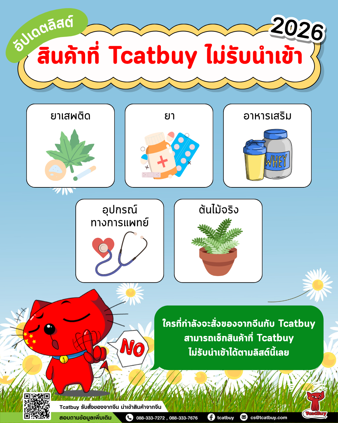 สั่งของจากจีนกับ TCATBUY --- อัปเดตลิสต์สินค้าที่ Tcatbuy ไม่รับนำเข้า 2026